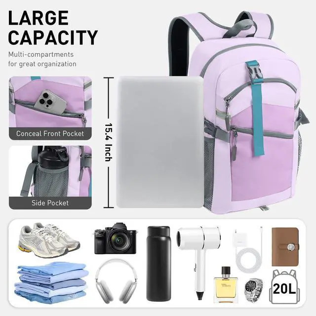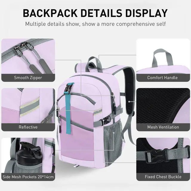 ODSSTAIPS Small Hiking Backpack, 20L Lightweight Travel Daypack with Phone Pocket, Perfect for Men and Women Ideal for Hiking, Traveling, and Outdoor Adventures,Purple