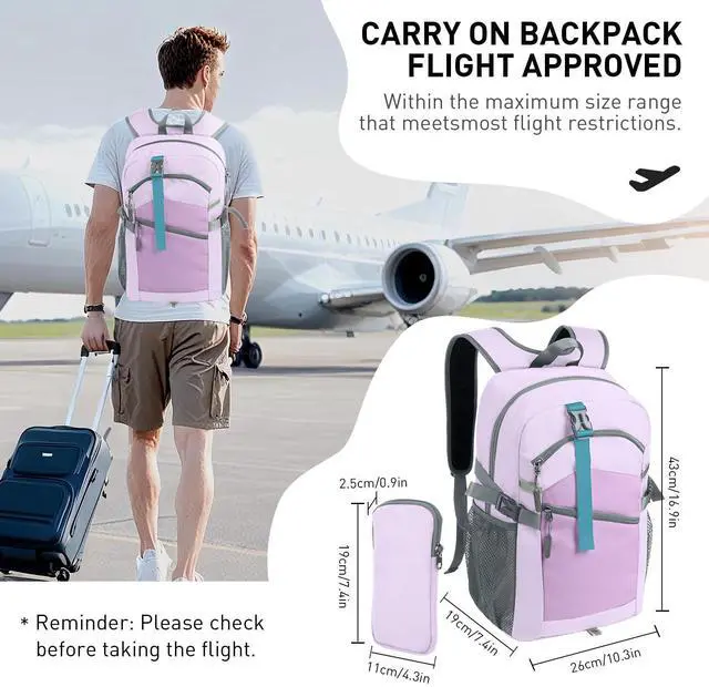 [Spacious Capacity & Compact Dimensions] This small hiking backpack offers a roomy 20-liter capacity, making it perfect for everyday use, short hikes, and quick trips. With dimensions of 10.3 x 7.4 x 16.9 inches and weighing just 1.4 pounds, it is compact and lightweight, allowing for easy carrying without sacrificing storage space.