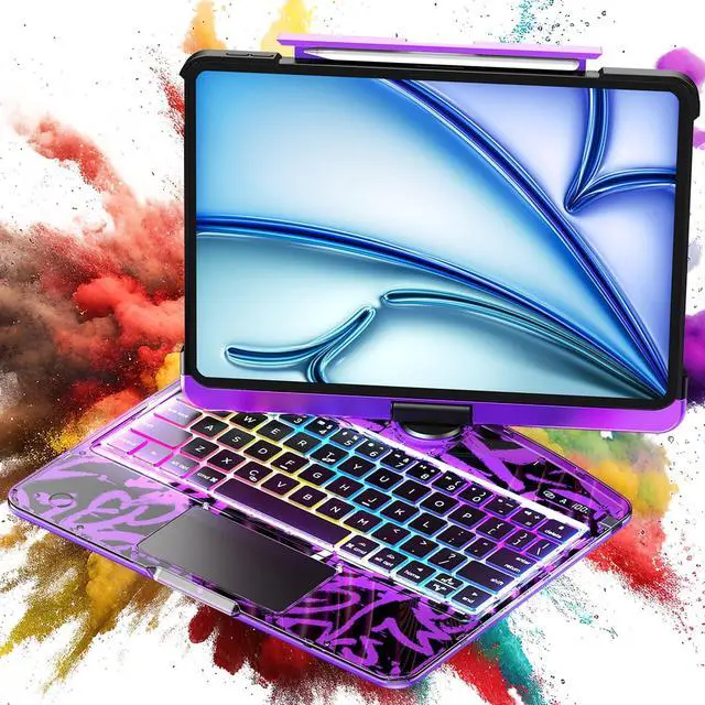 Clear Keyboard Case for iPad Air 11 Inch (M3/M2, 2025/2024)/ iPad Air 5th/4th Generation 10.9" 2022 2020/ iPad Pro 11" 1/2/3/4 2018-2022, Trackpad, Pencil Holder, 7-Color Backlit, Rotatable, Purple