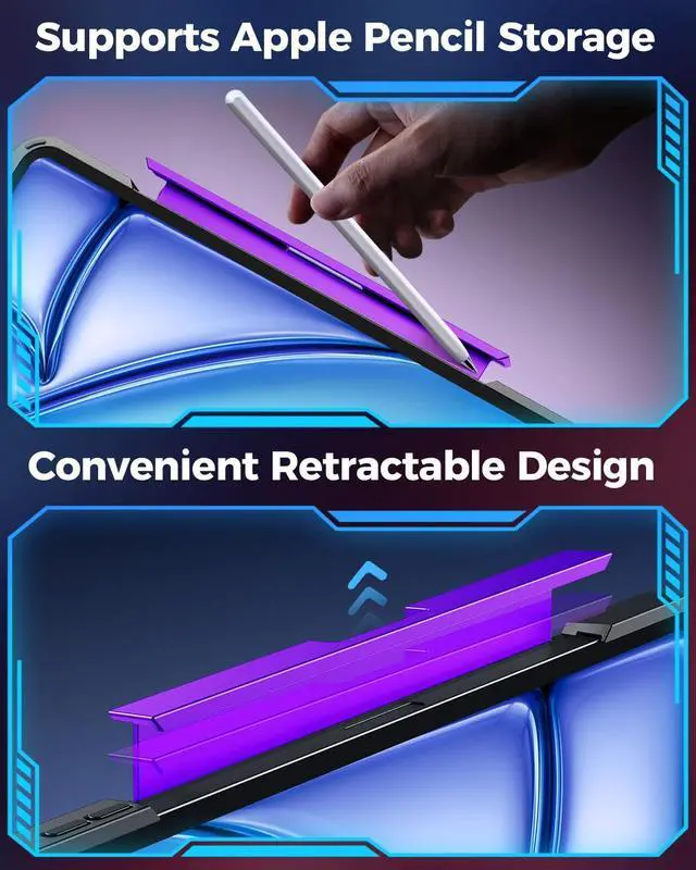 360° Rotating Stand & Multi-Angle Viewing: Experience ultimate flexibility with the 360° swivel stand, offering five adjustable viewing angles. Whether youre typing, sketching, or streaming, effortlessly adjust your iPad for optimal comfort and productivity in any scenario