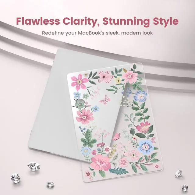 iCasso for MacBook Air 13 inch Case 2025 2024-2022 M4 M3 M2 Model A3240 A3113 A2681,[Ultra Thin Armor][100% Match Midnight], Air 13.6'' Flower Crystal Clear Hard Shell Protective Cover, Clear Flower