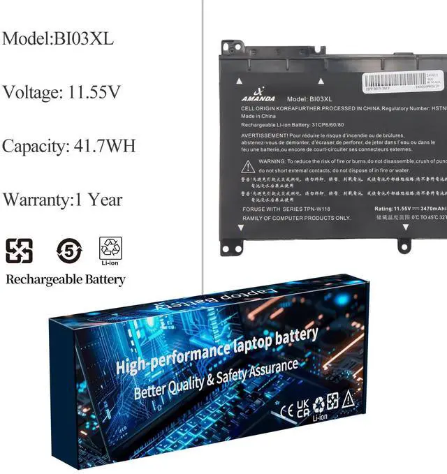 BI03XL Battery for HP Pavilion X360: New replacement batteries use better battery cells and are made of the highest-quality materials for an overall life expectancy of over a 600 charge cycles.