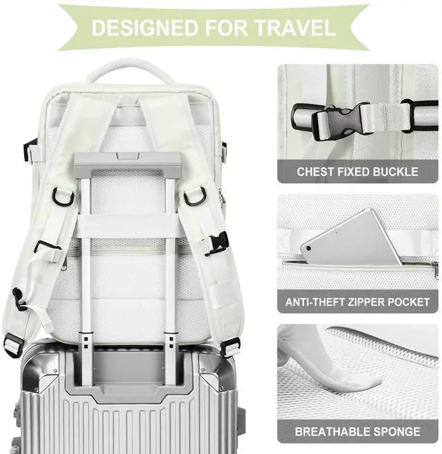 Large Travel Backpack Women, Carry On Backpack, Hiking Backpack Waterproof Outdoor Sports Rucksack Casual Daypack with USB Charging Port Shoes Compartment, Moon White