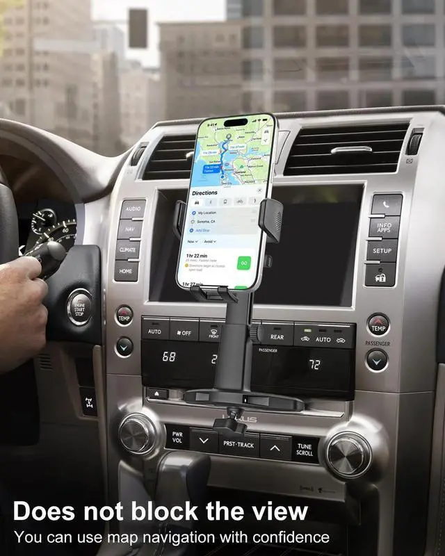 Unobstructed ViewThe CD slot car phone holder has a telescopic arm that can be adjusted up and down and a universal ball that rotates 360°, making it easy to adjust the appropriate angle and position. Solve the problem that your phone's viewing angle is too low or too high. The display and other buttons are not blocked, giving you an easy and safe driving experience.