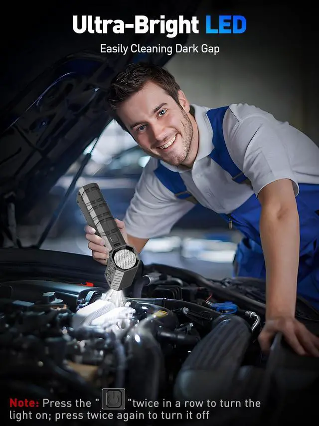 MULTI-FUNCTIONAL CLEANING TOOL: The air duster features an LED light and includes 1 nozzle and 4 brushes. The keyboard cleaner is ideal for cleaning keyboards, computer towers, air conditioning vents, car window blades, rearview mirrors, car seats, and sofa crumbs, it also dries pet hair, supports barbecue and camping tasks, inflates items, blows snow, and serves as a portable fan or mini leaf blower, making it a versa