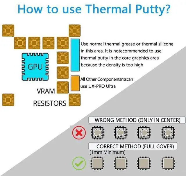 1. Ultra thermal putty is a high quality gummy / sticky thermal paste designed for use on memory chips and GPUs of various computers.
