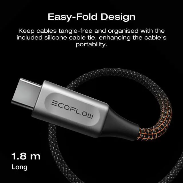 EF ECOFLOW Rapid Pro USB-C to USB-C Cable (240W, Nylon), 240W Dual USB-C Charging, 6 ft. Type C Charger