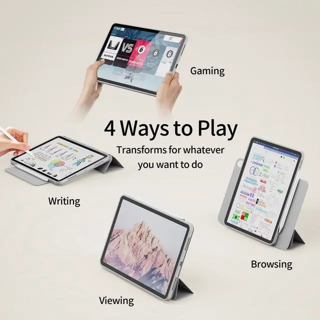 Removable Magnetic Cover - strong magnets in the case let you attach the cover for iPad a16 as a stable stand in landscape or portrait mode, or remove it for better ergonomics while gaming
