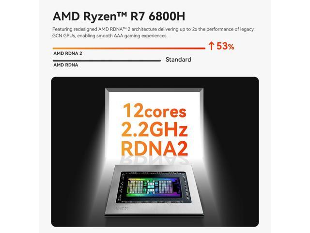 - AMD's New 6000 Generation - Mini computer is powered by AMD Ryzen 7 6800H processor, which is based on TSMC's 6nm process technology, has 8 cores/16 threads, running up to 4.7GHz at 28W TDP. Ryzen 6000 Series is equipped with Zen3+ architecture. Booting up the system, large apps, and light games is fast on Beelink 6800U. Perfect for home and office use.