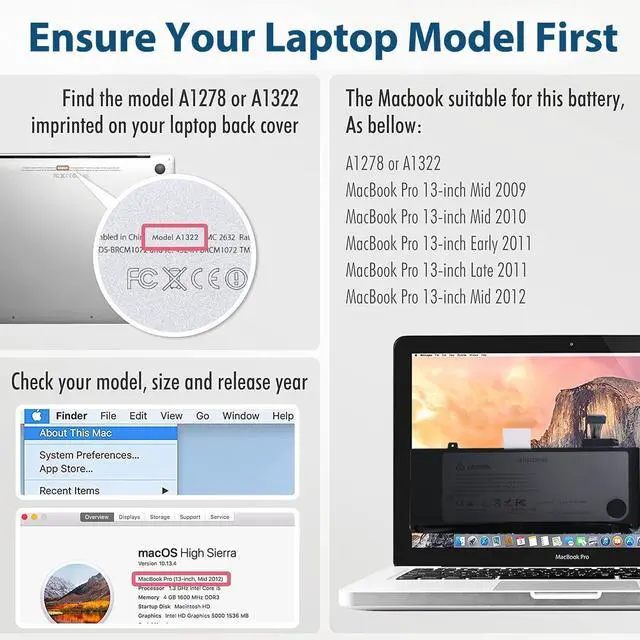 Ensure Compatible ModelsMacbook Pro 13 inch battery replacement are compatible with macbook pro series: 661-5557