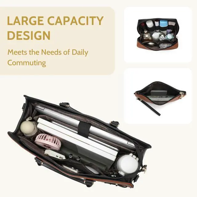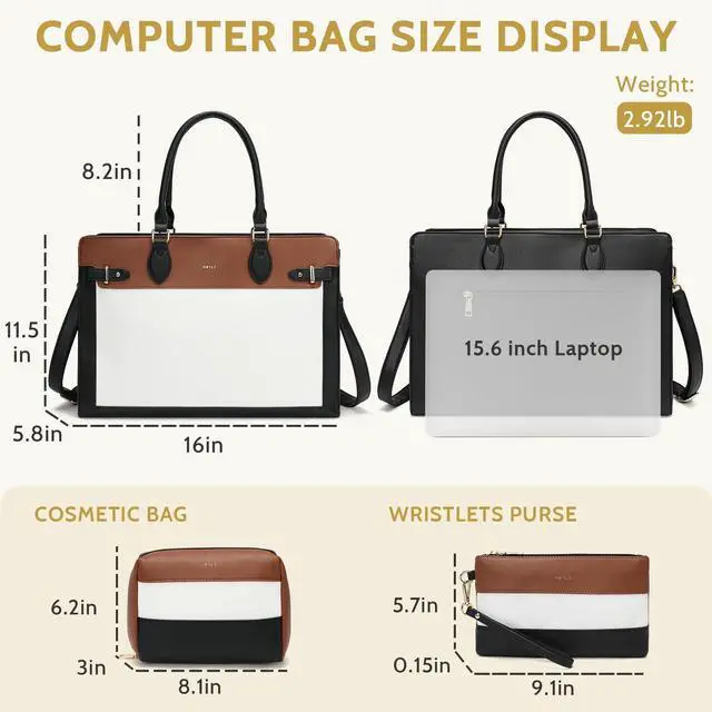 Large Capacity And Versatile USage:Include computer bag of size::16"L x 11.5H x 5.8D.and a clutch purse and a cosmetic bag, is spacious enough to accommodate a 15.6-inch laptop and your phone, wallet, makeup, passport various daily essentials.