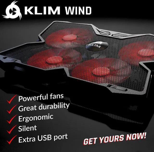 KLIM Wind Laptop Cooling Pad - More Than 500 000 Units Sold - New - The Most Powerful Rapid Action Cooling Fan - Laptop Stand with 4 Fans at 1200 RPM - USB - PS5 PS4 - Red