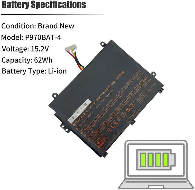 • Tech SpecsDevice Type:Notebook Battery, Battery Type:Lithium ion 4-Cell, Voltage:15.2V, Capacity:3680mAh/62Wh, Condition:Brand New, Manufacturer Warranty:One-year