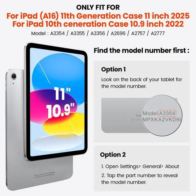Compatibility: Protective Case for iPad A16 11-inch 2025, for iPad 11th generation 11 inch 2025, for iPad 10th generation 10.9 inch 2022 Model A3354/ A3355/ A3356/ A2696/ A2757/ A2777 ; Please confirm the product before purchase this case for iPad