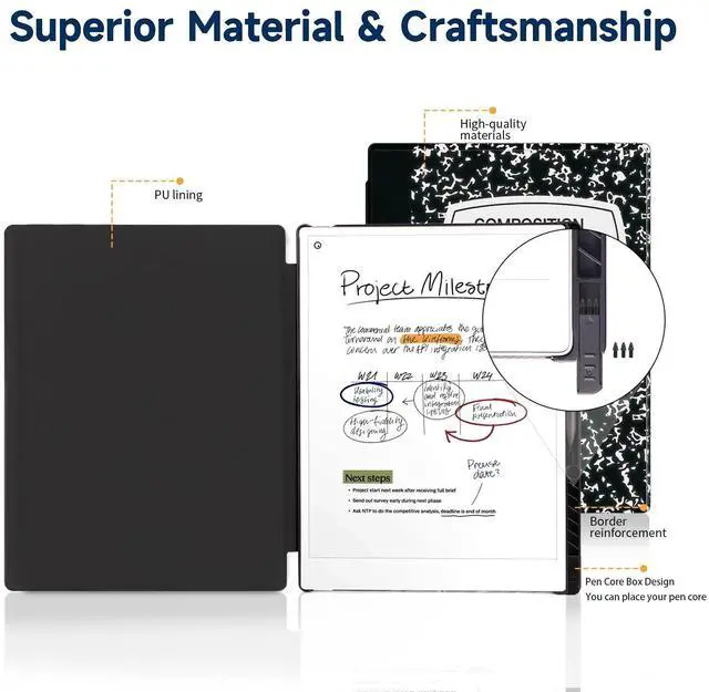 Premium MaterialsHigh quality premium faux leather case with fully comprehensive screen protection, prevent from scratches and daily damageproviding a firm grip and guaranteed durability,We have increased the reinforcement shape in the protective case, Make Remarkable Paper Pro case more durable.