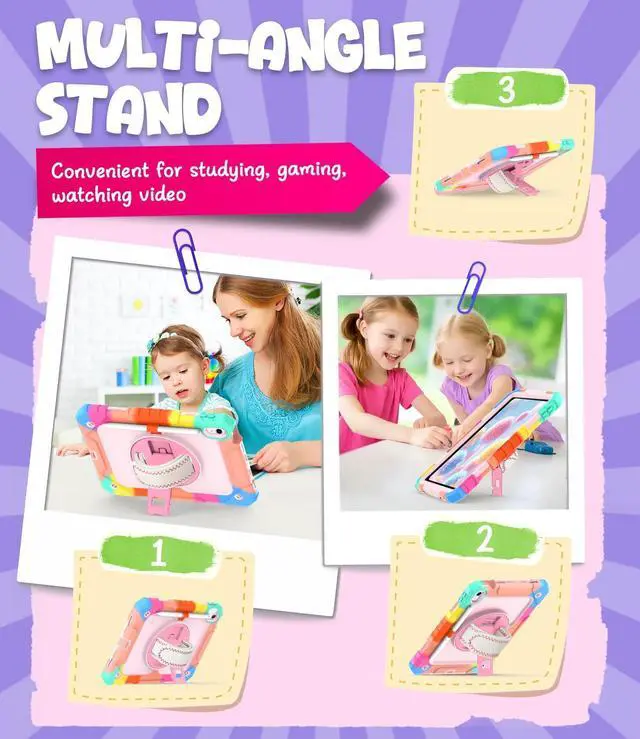 With Shoulder/Hand Strap & Rotating Stand: The ipad A16 case kids with portable shoulder/hand strap makes your tablet more conveniently outdoors & indoors. 360 degree rotating kickstand provides different typing & viewing angles for studying, gaming, watching video, etc.
