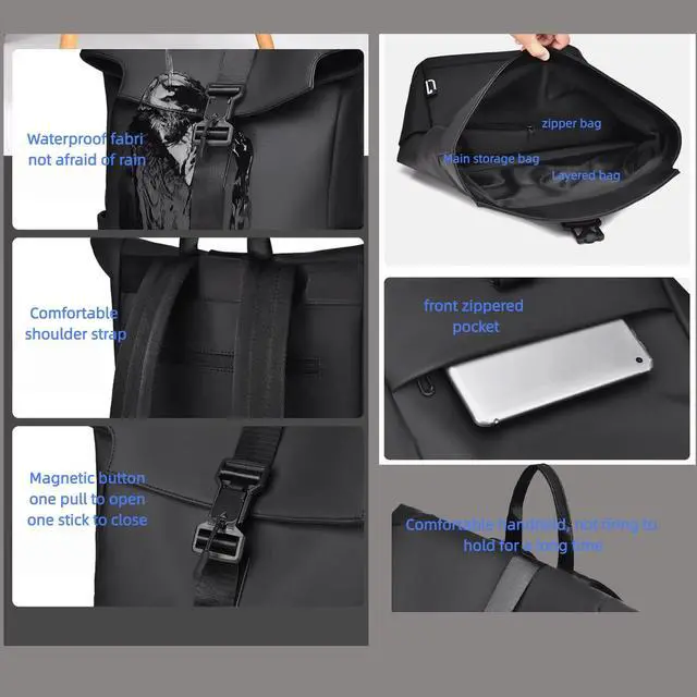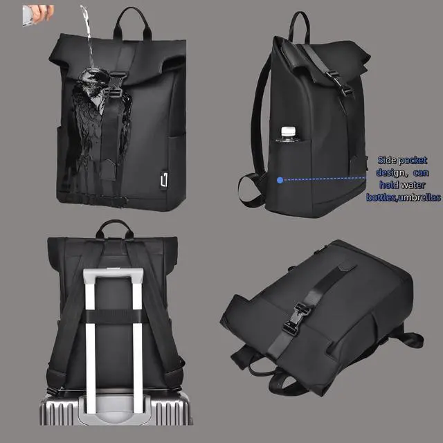Large capacity backpack This unisex backpack has a simple appearance and lightweight material. There are multiple compartments inside for easy organization of items. The backpack is equipped with pockets of different sizes, which can be used to store office and travel essentials such as computers, passports, power banks and clothing.