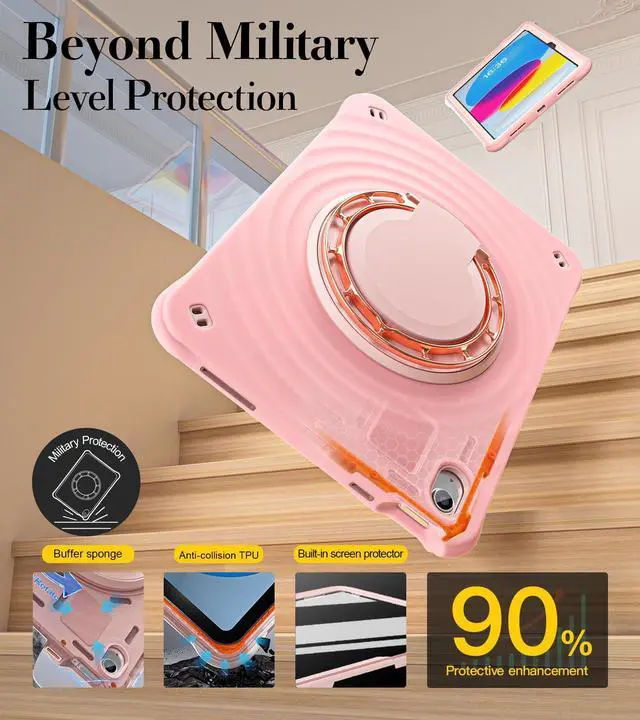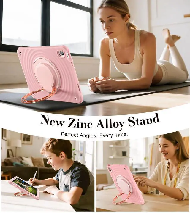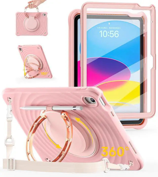 [360°Rotating 180°Folding Ring Handle/Stand]:This iPad a16 11/10 Gen case features a 180° foldable & 360° rotating Zinc Alloy stand, offering limitless viewing angles for optimal comfort. Whether you're working, streaming, or browsing, effortlessly adjust your iPad to portrait, landscape, or hanging modes.The adjustable shoulder strap allows you to carry or hang your iPad at any time, so that you can provide more convenience in outdoor sports, traveling.