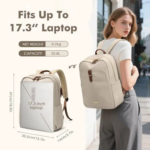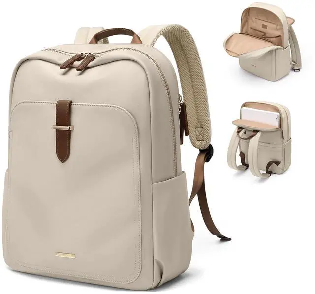 GOLF QUALITY Laptop Backpack for Women, Casual Work Business Backpacks Purse Carry on Travel Backpack, 17.3 Inch, Apricot