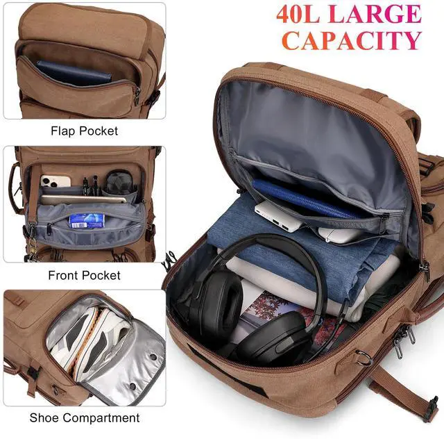 WITZMAN Travel Backpack for Men 40L Large Carry-on Airline Approved Convertible 3 in 1 laptop Bags Fit 17 inch (A8013 Brown)