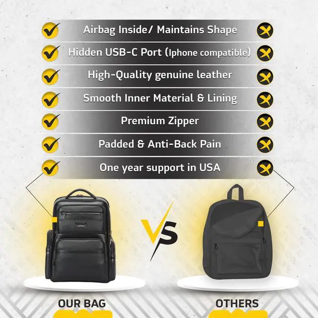 , Featuring premium high quality cow leather, padded shoulder and luggage straps, and a breathable EVA foam back, this laptop backpack minimizes shoulder strain and offers unparalleled comfort thanks to its ergonomic design for the modern professional on the go.