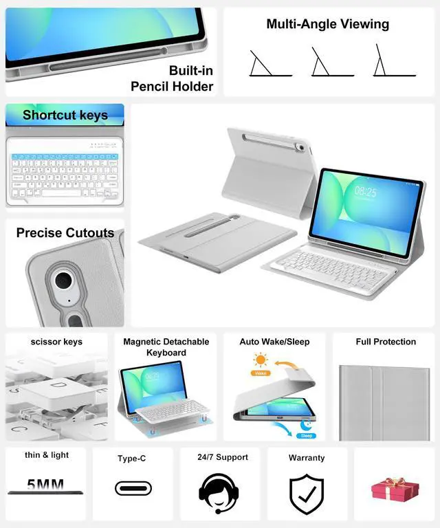 Portable Shortcut KeysThe slim keyboard for 2025 galaxy tablet has shortcut function keys, allowing you to enjoy the excellent versatility for typing, reading and gaming.