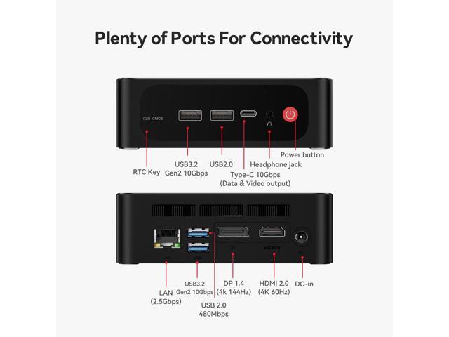 - Compact & Rich InterfaceEasy to setup and small in size. WiFi 6 (802.11ax) + Bluetooth 5.4 is faster and more stable. Gigabit Ethernet 2.5G LAN network connectivity. Beelink SER5 MAX mini computer is equipped with 1x type-C, 1xHDMI, 1xDP, 2x USB 3.2, 2x USB 2.0, 1 x2.5G LAN, 3.5mm Audio Jack. Fan design and SSD cooler also help this mini pc works better and efficient heat dissipation. It can be fixed on the back of the monitor to save your workstation.