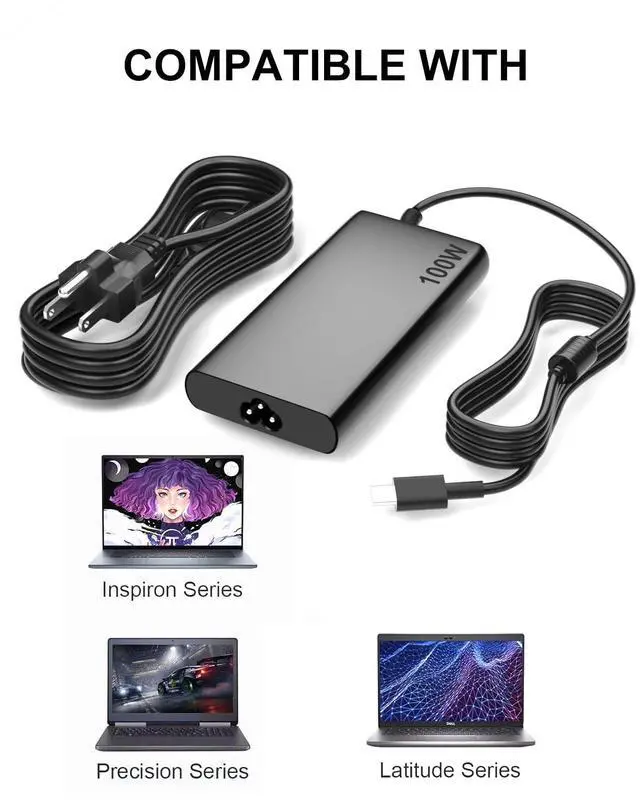 Zosam 100W USB C Laptop Adapter Charger Compatible with Dell Pro 14 13 16 Plus 2-in-1/Rugged 14 13 Premium RB14250 PC14250 PC14255 PC16250 PB14250 PB14255 PB16250 PA13250 PA14250 Power Supply