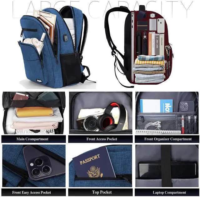 Front Zipper Pockets: Perfect for keeping passports, earphone cases, and small items readily accessible. Versatile Utility - The work backpack transcends typical boundaries, serving as an essential companion for daily use, travel, work, university, and more. Its unisex design makes it suitable for everyone, redefining what you expect from a backpack.