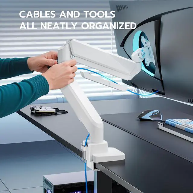 Save Space & Stay Organized - If you dont want to sacrifice valuable desk space for your monitor, a high-quality monitor arm is the perfect solution. It lifts your screen off the desktop to a comfortable eye level, improving posture and reducing strain. Plus, by freeing up space and managing cables neatly, it helps create a cleaner, more organized workspace that meets both your ergonomic and aesthetic needs