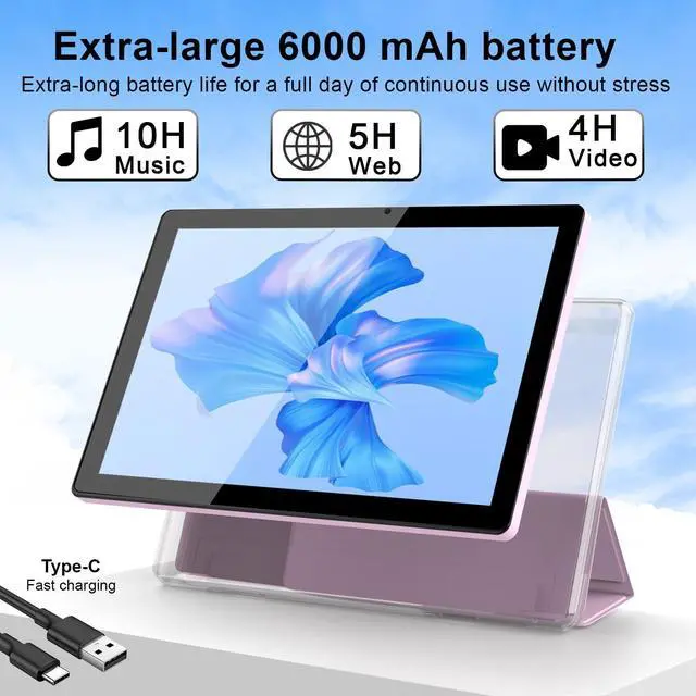 10.1 Inch Android tablet ^^ HD large screen ^^ Powerful battery life ^^ 5G&Wi Fi 6 Upgrade your digital life! This 10.1 inch Android tablet is equipped with a 1280*800 high-definition display, providing a clear and delicate visual experience. A powerful 2.0GH z processor paired with 12GB (4+8 expansion) of RAM ensures smooth multitasking and large-scale applications. 64GB flash memory meets daily storage needs and supports SD card expansion to 1TB, making it easy to store more photos, videos, and files. The 8MP+2MP dual camera allows you to capture exciting moments at any time, while the 6000mAh large capacity battery provides long-lasting battery life, supporting long-term entertainment and office use.