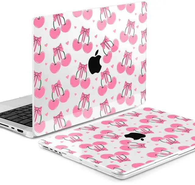 MEEgoodo for M4 MacBook Pro 16 inch Case 2024 2023 2021, Clear Case Fit Model A3403/A3186/A2991/A2780/A2485 M3 M2 M1 Pro/Max, Pink Cherries & Bows