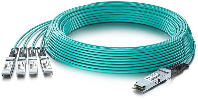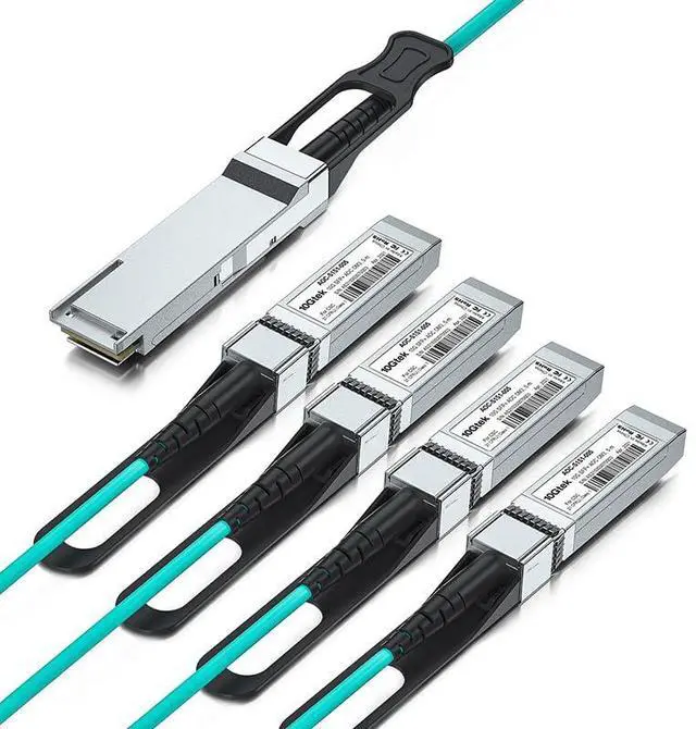 10Gteks QSFP+ to 4x SFP+ AOC cable is a 40GBase QSFP+ hybrid optical cable. A side is a QSFP+ optical connector, B side is 4 SFP+ optical connectors. Its an application for the link with QSFP+ port on 40Gb/s rate switch or host and feeds up to 4 upstream 10Gb/s switch or host.