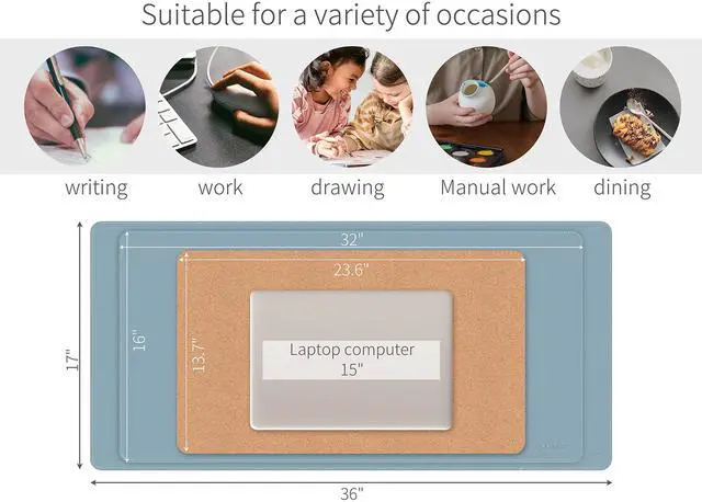 Desk Protector: This Desk Pad can protect your desk from dampness and scratches; Also protect your accessories, such as your laptop phone or camera, from scratches when they come in contact with your desk