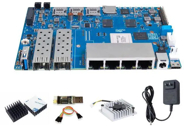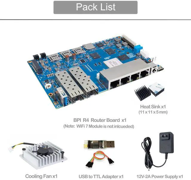 Banana Pi BPI-R4 WiFi 7 OpenWRT Wireless Dual-Band WiFi Router Board, MediaTek MT7988A (Filogic 880) SoC, 4G/5G Internet Router, 4X GbE and 2X 10GbE SFP for NAS Smart Home Gateway (8GB RAM Bundle1)