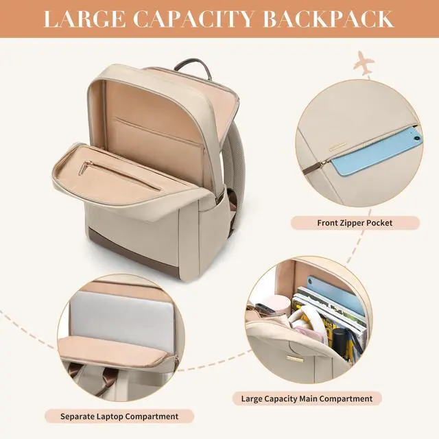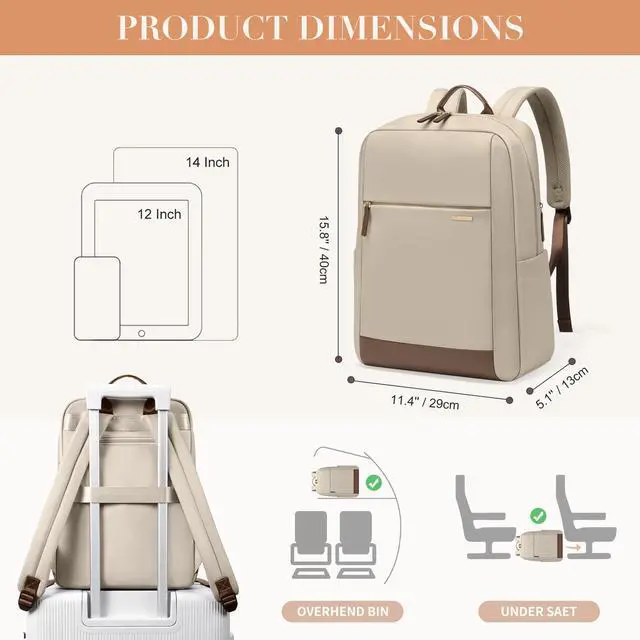 GOLF QUALITY Laptop Backpack for Women - Business Travel Anti Theft Laptop Bag Backpack Water Resistant College Computer Backpacks for Men Women Fits 14Inch Notebook (Apricot)