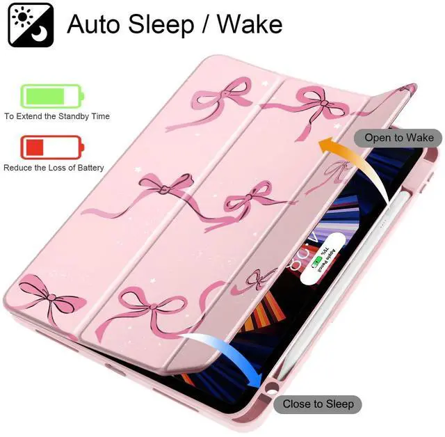 May Chen for iPad Pro 11 inch M2 4th Generation 2022, iPad Pro 11 3rd/2nd/1st Gen, Case with Transparent Shockproof Back Cover [Built-in Pencil Holder, Auto Sleep/Wake, Bows Pink