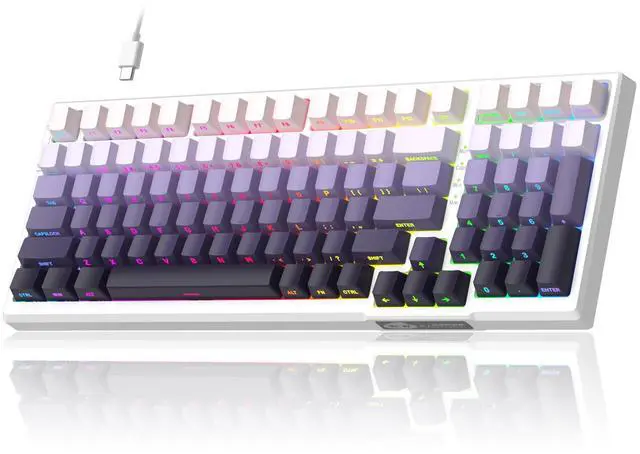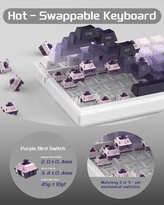MageGee SKY98 Mechanical Gaming Keyboard, 96% Hot Swappable Wired Custom Creamy Keyboards w/ 5-Layer Sound Dampening, RGB Backlit, Side Printed Keycaps for Win/Mac (White & Purple, Purple Bird Switch)