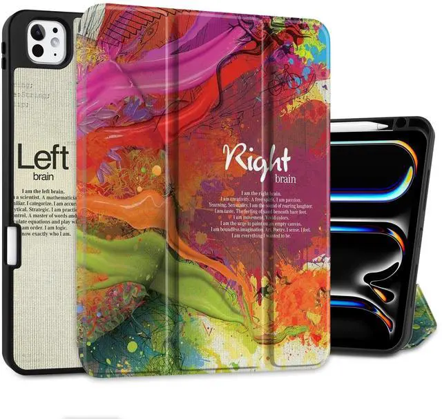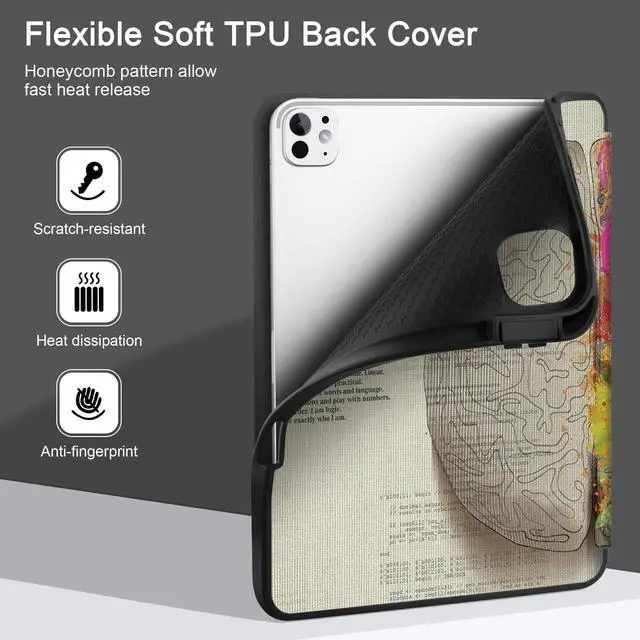 MEEgoodo Case for M5 iPad Pro 11 inch 2025/M4 iPad Pro 11 inch Case 2024, Tablet Cover with Trifold Stand & Pencil Holder & Auto Wake/Sleep & Soft TPU Back Cover, Brain