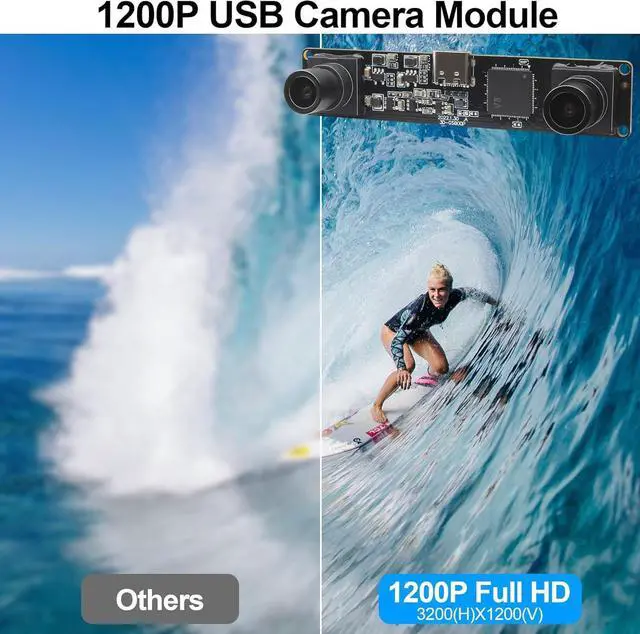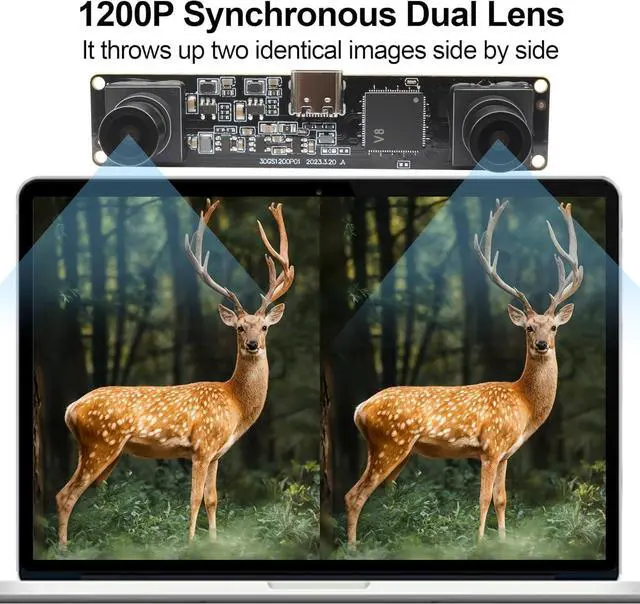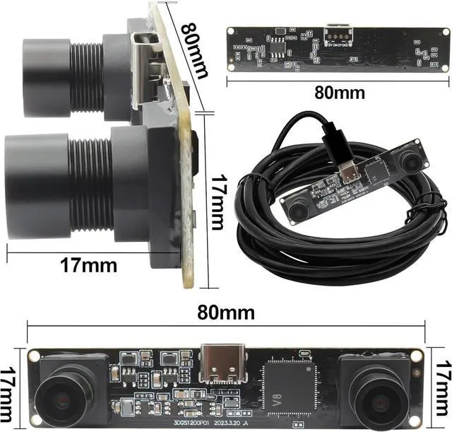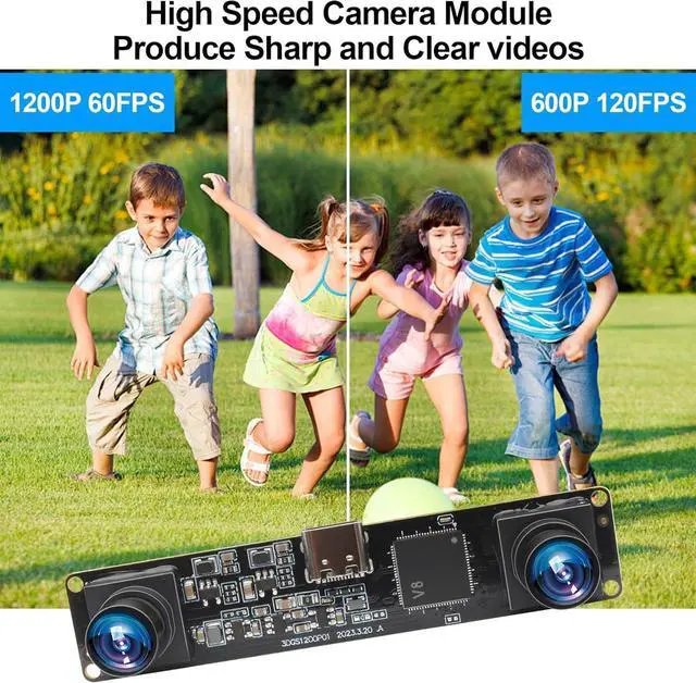 Unlock the power of dual-lens imaging with this cutting-edge USB stereo camera module. Boasting a global shutter and synchronous dual lenses, it captures high-resolution 1200P video at an impressive 60FPS or 120FPS frame rate. With a wide 94° viewing angle, this camera excels in applications like VR, face recognition, and live streaming. Its compact design and USB plug-and-play functionality make it compatible with PCs, laptops, and even Raspberry Pi devices. Experience seamless integration and unparalleled performance with this high-speed, high-definition stereo camera module.