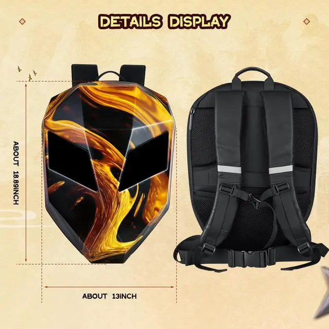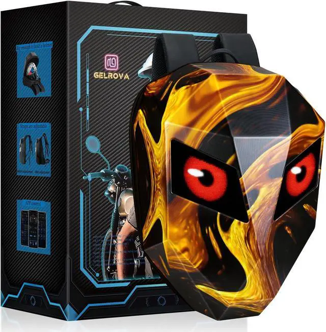 Gelrova Knight Motorcycle Backpack with LED Eyes, App Control Waterproof Hard Case Motorbike Bag, DIY Laptop Backpack for Riding, Cycling, Travel, Large Size 19inch, Flaming Knight