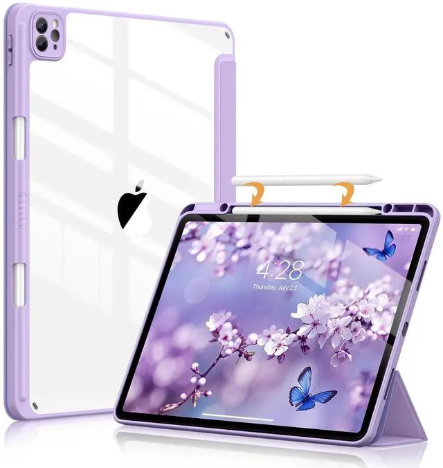 (Tips: Apple Pencil is NOT included! ) ^^ [Auto Wake/Sleep] - Inner magnetic strip, easy snap on and off, can ensure the auto sleep/wake function engages quickly every time. Help you extend the iPad Pro 12.9 inch standby time and reduce the loss of battery ^^ [Two Viewing Angles] - Trifold stand design provides stable support for the iPad Pro 12.9". Two angles provided for satisfying your reading, viewing, typing, or making video calls