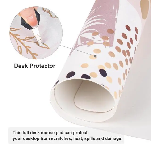 Easy to clean, just wipe with a wet cloth or tissue. ^^ Durable Non Slip Material - Dense PU leather material makes this big mouse mat stay in place on the desktop, providing stable operation of the mouse and keyboard. ^^ Smooth Surface - Smooth surface allows fast mouse movement while maintaining excellent accuracy and control. Premium material provides maximum comfort for your wrist while enjoy writing, typing, browsing, mouse sliding, gaming, and even sleeping on this mouse pad. ^^ Available in a variety of awesome patterns and vibrant colors for more desk decor choices.