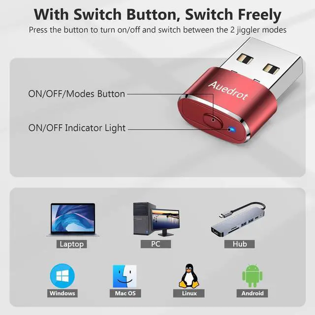 METAL MATERIAL WITH SWITCH BUTTON: This mouse jiggler is made of aluminum alloy, which is more upscale and sturdy than plastic. With ON/OFF/Modes Switch button, "Short Press" to turn on/switch between the 2 modes, and "Long Press" to turn it off ^^