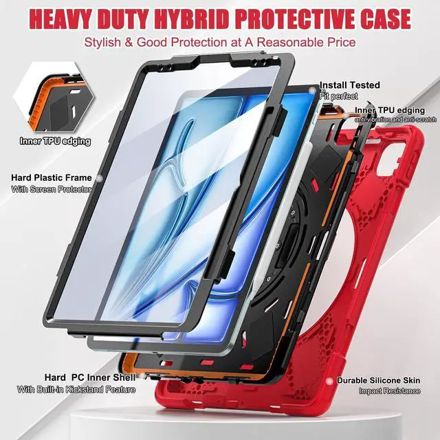 Rotatable Stand & Pencil Holder: With the stable and adjustable 360 rotating kickstand, our iPad Air 13 inch (M2) 2024 case offers comfortable viewing angles for typing, video calls, or movie watching. The pencil holder feature provides easy storage for note-taking, artistic creation, drawing, writing, or online classes/meetings. It's perfect for back to school supplies. Please note that the pen is not included ^^
