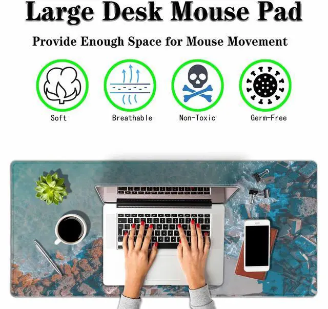 • Non-Slip Natural Rubber Base:This extended large mouse pad is soft and thick 3 mm/0.12 inches,the base is made of high quality natural rubber,it is safe,will be no unpleasant smell.it is will firmly grap the desktop,avoid random movement,and provide stable operation for mouse or keyboard.