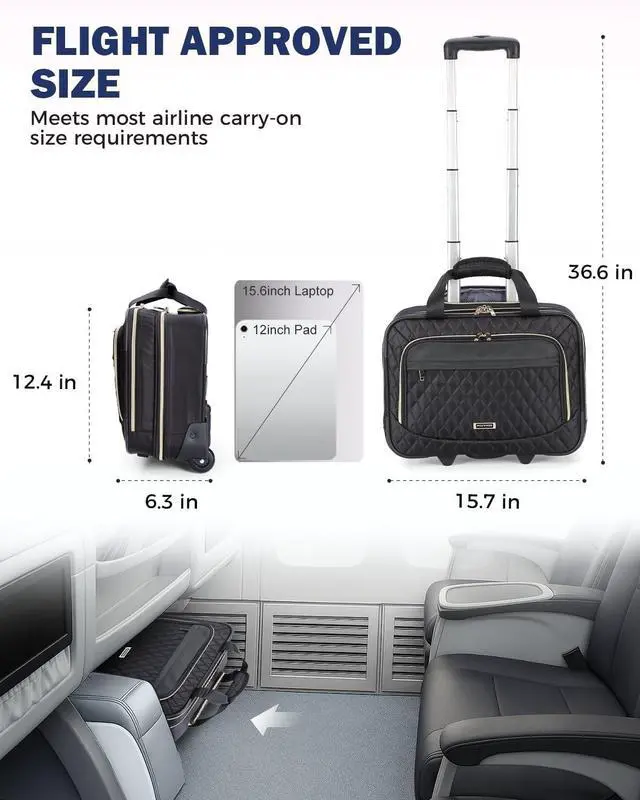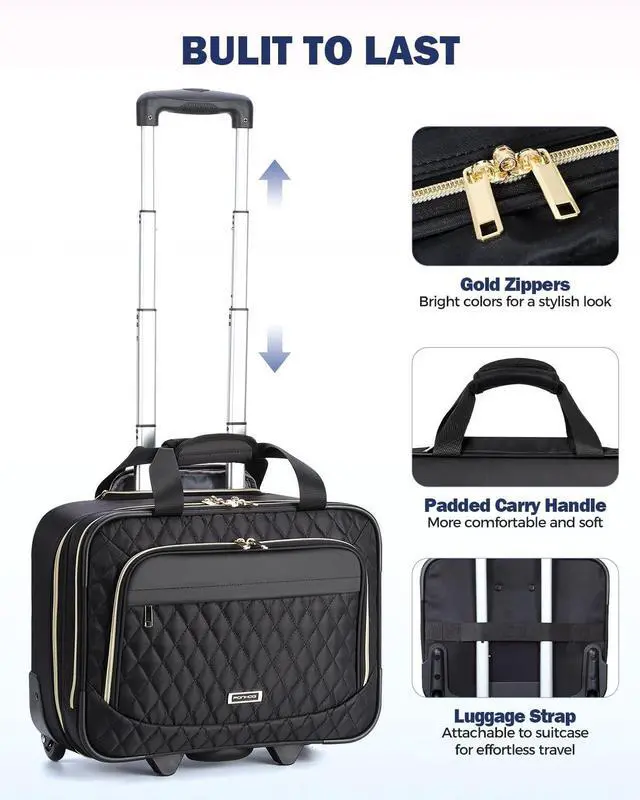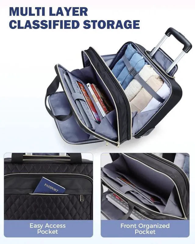 Multi Layer Storage: Rolling laptop bag offers 3 compartments and 16 pockets, this bag securely stores your laptop, documents, and personal items, keeping you organized for business or leisure travel ^^