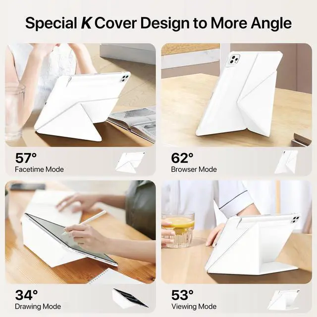 Cover Design: Compared to the traditional trifold design, our innovative foldable cover case allows for placement at four new angles, including a vertical angle, significantly enhancing practicality for both work and daily use. The fold case also includes the traditional drawing, viewing option ^^