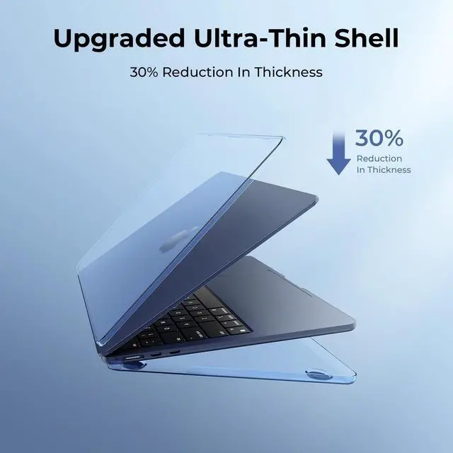 Hard case compatible with MacBook Air 15 inch 2023-2025 M2 M3 M4 A2941 A3114 A3241. Simple snap-on two-piece design for easy installation. Exquisite plastic protective case protects your Air 15 from scratches and dirt. Ultra-thin and lightweight hard case barely adds weight to your device, and a matching keyboard cover and screen protector are provided to protect the laptop keyboard and screen from spills and stains. Precise cutouts perfectly match all ports and function keys. No need to remove the case when using chargers, cables or headphones, very convenient to use.