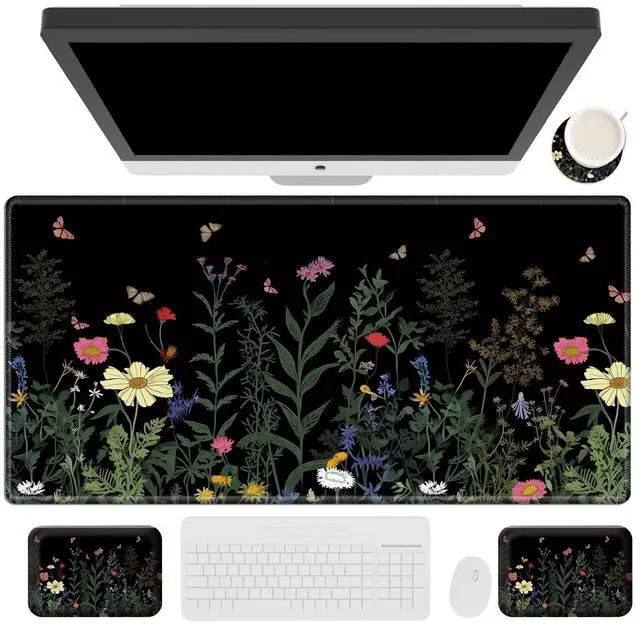 Rossy 4 in 1 Our mouse pad set include desk Pad * 1Ergonomic wrist mouse pad * 2, Coffe cup coaster * 1. Provides better support to your hands and wrists, make your desk stylish No need for unnecessary mouse pad This desk blotter is enough to hold your mouse, keyboard and other desktop items. Improve work efficiency / gaming experience, keep the desktop clean and protect the table top from wear. Stitched Edges Delicate Stitched Edges ensures itself to be used for a long term without deformation or fall apart, enhances the aesthetic and lifespan of the mousepad.